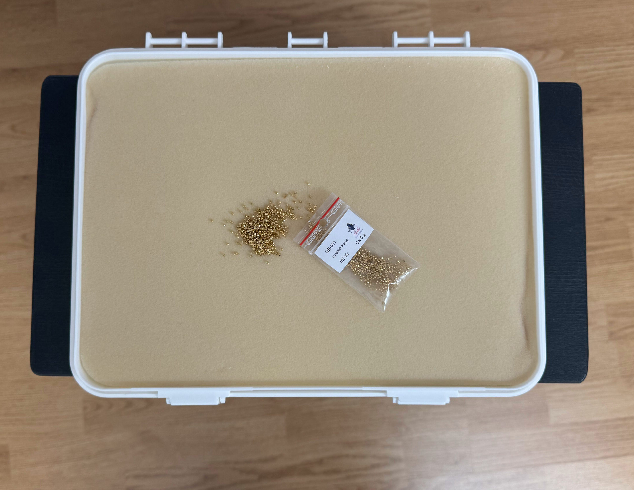 Denna pärlbricka är perfekt när du vill ta med dig dina pärlprojekt. Både lock och botten är klädda med pärlmatta, vilket gör att du kan låta mindre pärlor, t.ex delica ligga kvar och knäppa på locket och ta med dig ditt projekt. Brickan är ca 30x24cm. För de minsta projekten finns denna mini pärlbrickan, som gör det ännu smidigare och för de riktigt stora projekten passar denna största brickan.